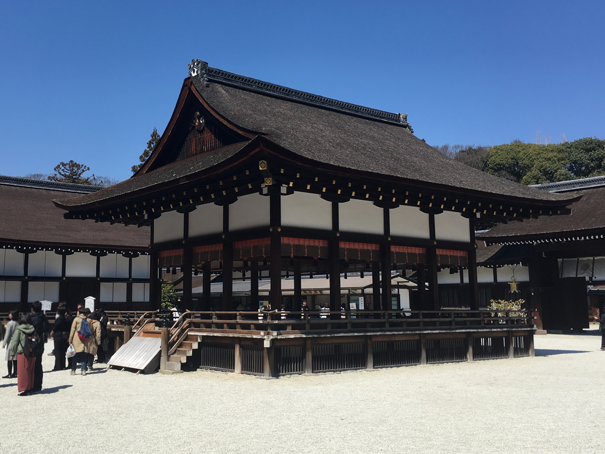 重要文化財が多くある下鴨神社でも、境内に入って最初に目に入るのがこの舞殿。葵祭では重要な役割を果たす建物で、この舞殿も重要文化財に指定されています。