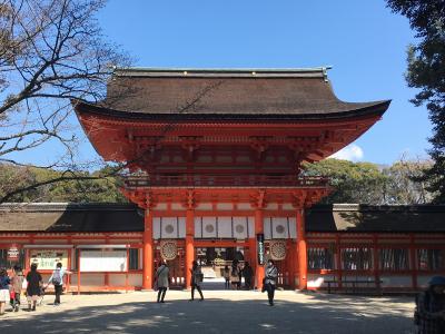 境内は国宝の本殿・拝殿をはじめ、国宝・重要文化財の建造物が多く並び、こちらも一見の価値があります。訪問時は4月上旬で、京都市内でも間もなく桜が満開の時期でしたが、こちらでは梅もまだまだ見ごろで、境内のあちこちでいい香りが漂っていました。- 旅行時期