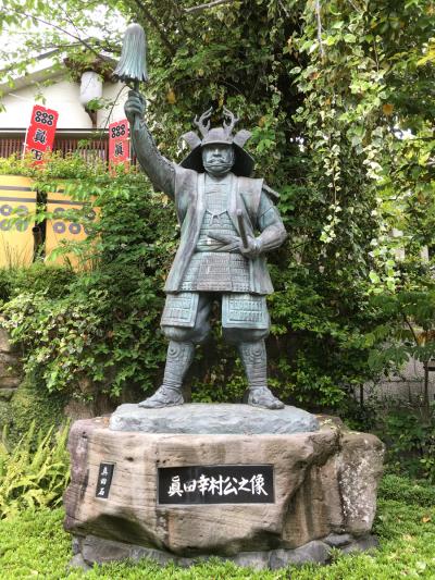 神社には信繁(幸村)の銅像が建っており、真田グッズも売られていました。また、真田の抜け穴と言われるものも境内にあります。