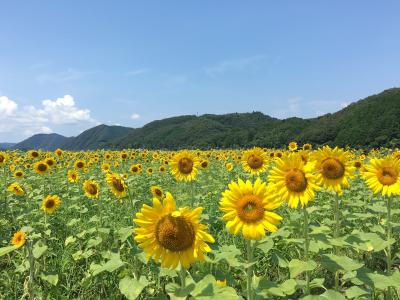 佐用の名所の一つとなっているひまわり畑。ひまわりの開花時期に合わせて、ヒマワリ祭りが開催されています。