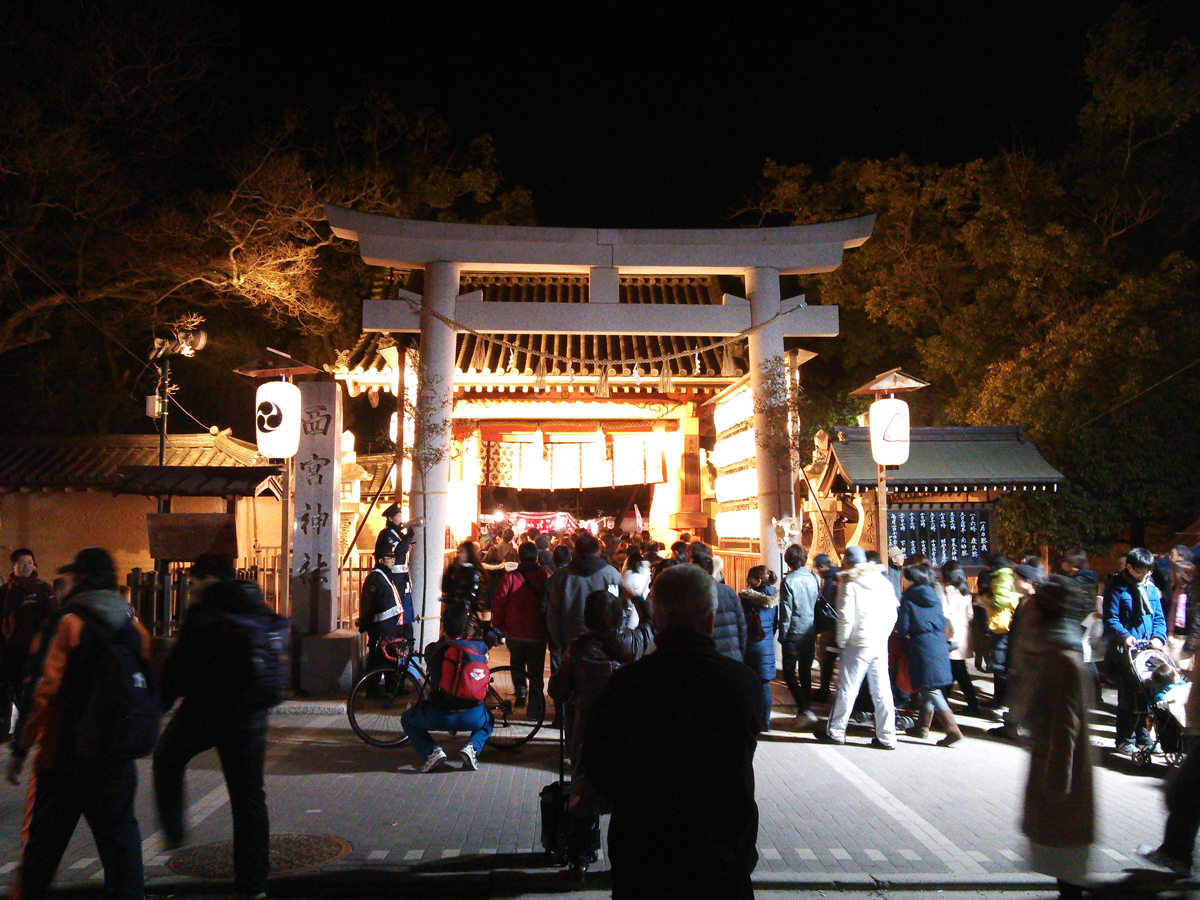 関西では有名なえびす神社の総本社である西宮神社。1月9~11日の十日えびすだけでなく、初詣の時期もにぎやかで、通りを車両通行止めにして多くの屋台が並びます。