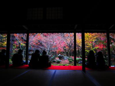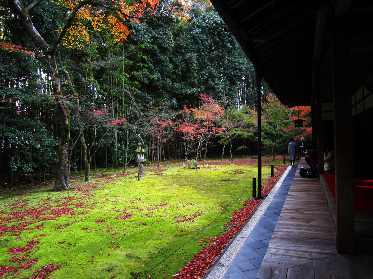 紅葉の名所としても知られ、お庭の中央の苔一面に散った紅葉の葉が広がる敷き紅葉が美しいお寺です。
