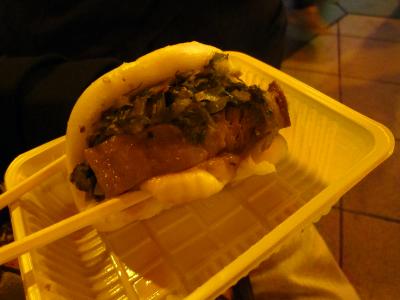 お店の横に小さなテーブルと簡素ながら椅子も置かれており、数名は座って食べることができます。持ち帰りも可能です。- 旅行時期