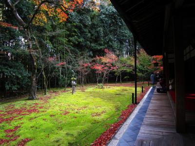 多くの史書のも登場する大徳寺にある塔頭の一つ高桐院。大徳寺の境内から高桐院に至る小道も風情があります。高桐院の見どころはやはりそのお庭でしょうか。JR東海のポスターにもなったお庭は、春~夏は苔が、秋はその苔の上に紅葉が散るのが美しい場所です。JRのポスターでは苔一面の紅葉でしたが、紅葉の本数がそこまで多いわけでもなく、時期もずれることがあることから、一面の敷き紅葉というのはなかなか難しい印象です。