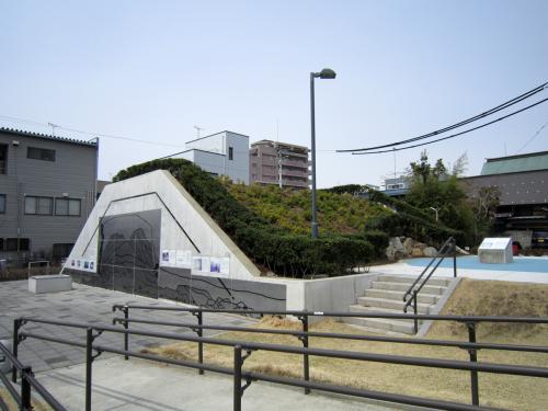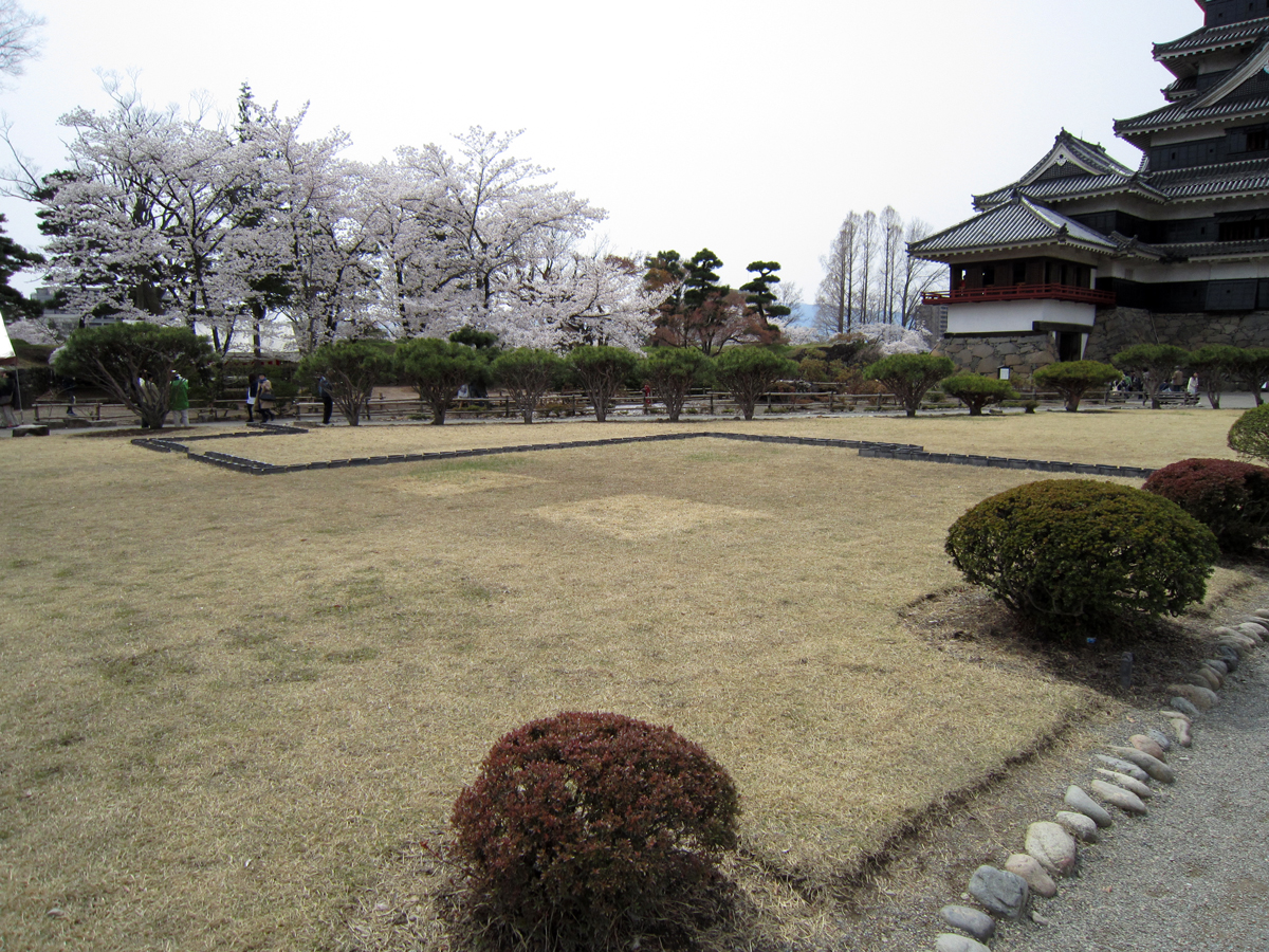 松本城は国宝の現存天守を中心として、いくつかの建物が現存または復元されていますが、その周囲にはあまり現存するものは残っていません。この西総堀土塁公園は、過去の発掘調査から松本城の防御設備であった土塁を復元、公園として整備しています。