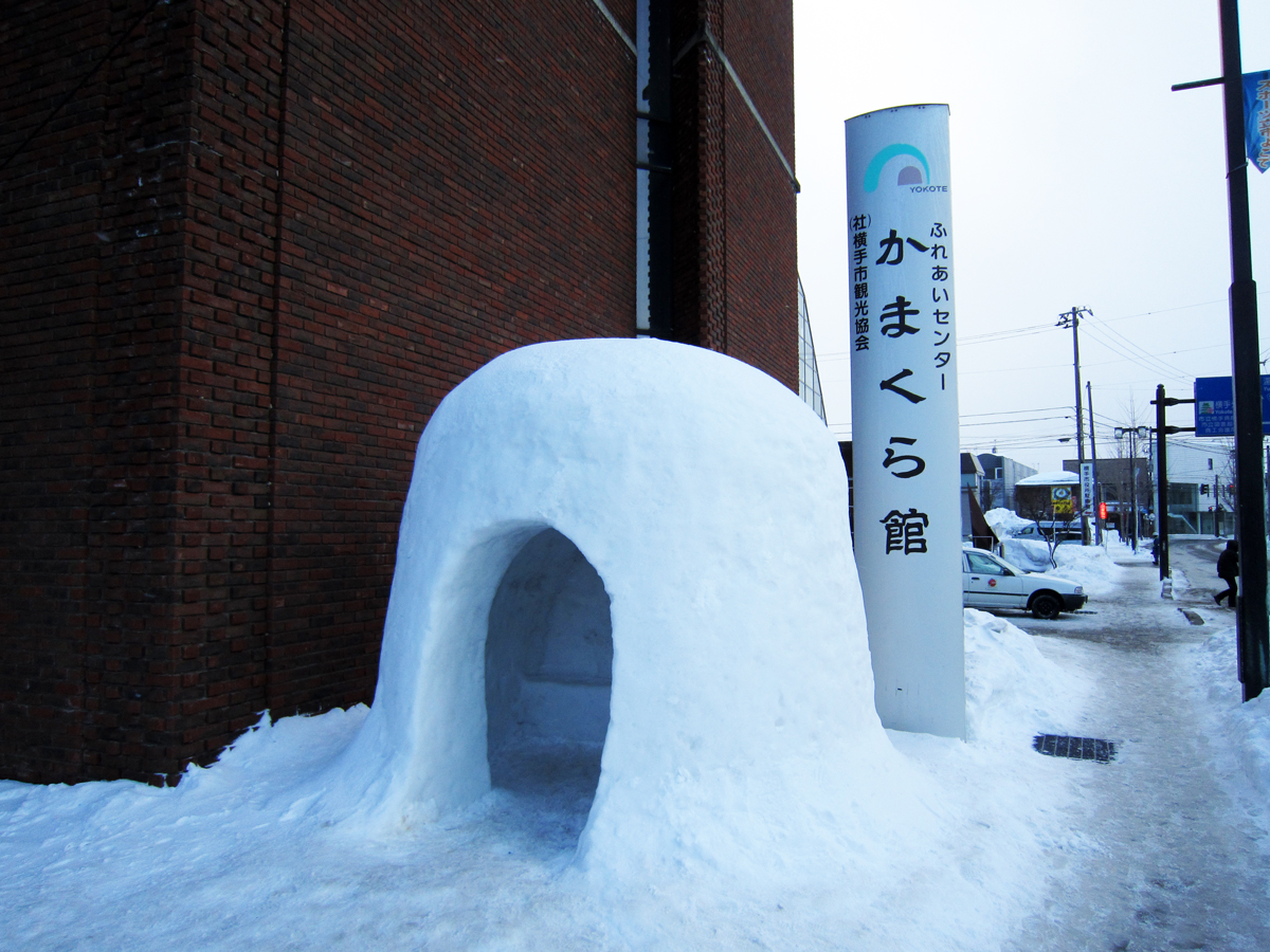 横手の中心部にある、横手市観光協会の建物。特徴は名前の通りかまくらを体験できること。館内の保冷室の中にはかまくらがあり、季節を問わずかまくらを体験することができます。