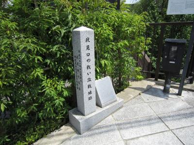 水どころ伏見の十石船がのんびり進む水路にかかる橋の一つ京橋。この京橋のたもとにあるのが、伏見口の戦い激戦地跡の石碑。