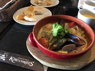 お子様ランチも船のお皿に乗っていて、おまけのおもちゃも海賊さんからもらいました。