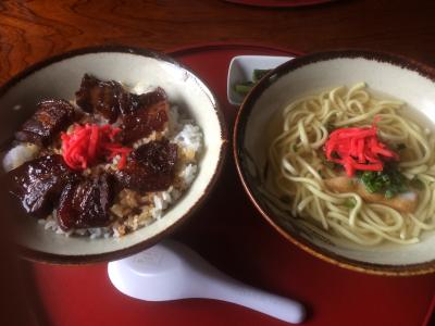 ハーフのソーキそばとスタミナ丼のセット800円をいただきましたが、ソーキソバは優しい味でスタミナ丼は甘辛のたれのかかった肉がおいしかったです。- 旅行時期