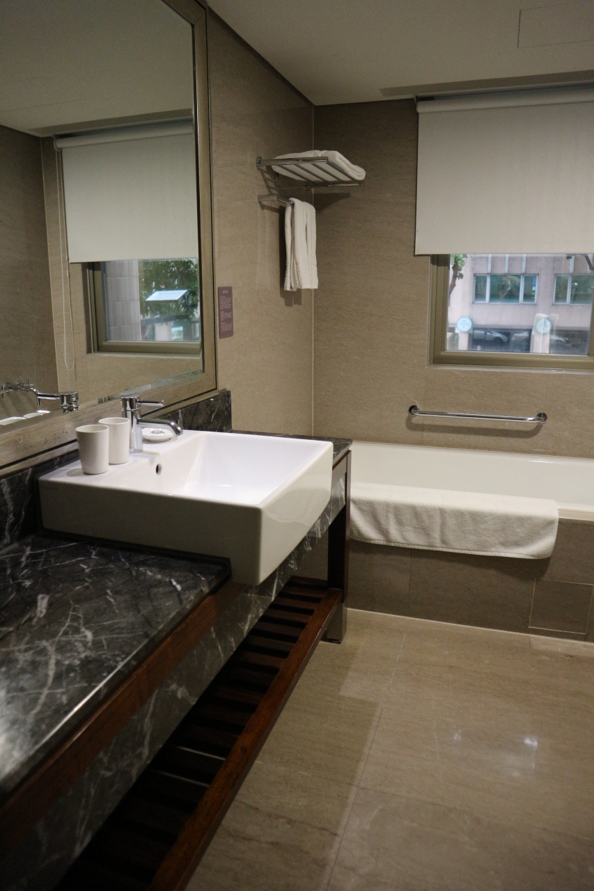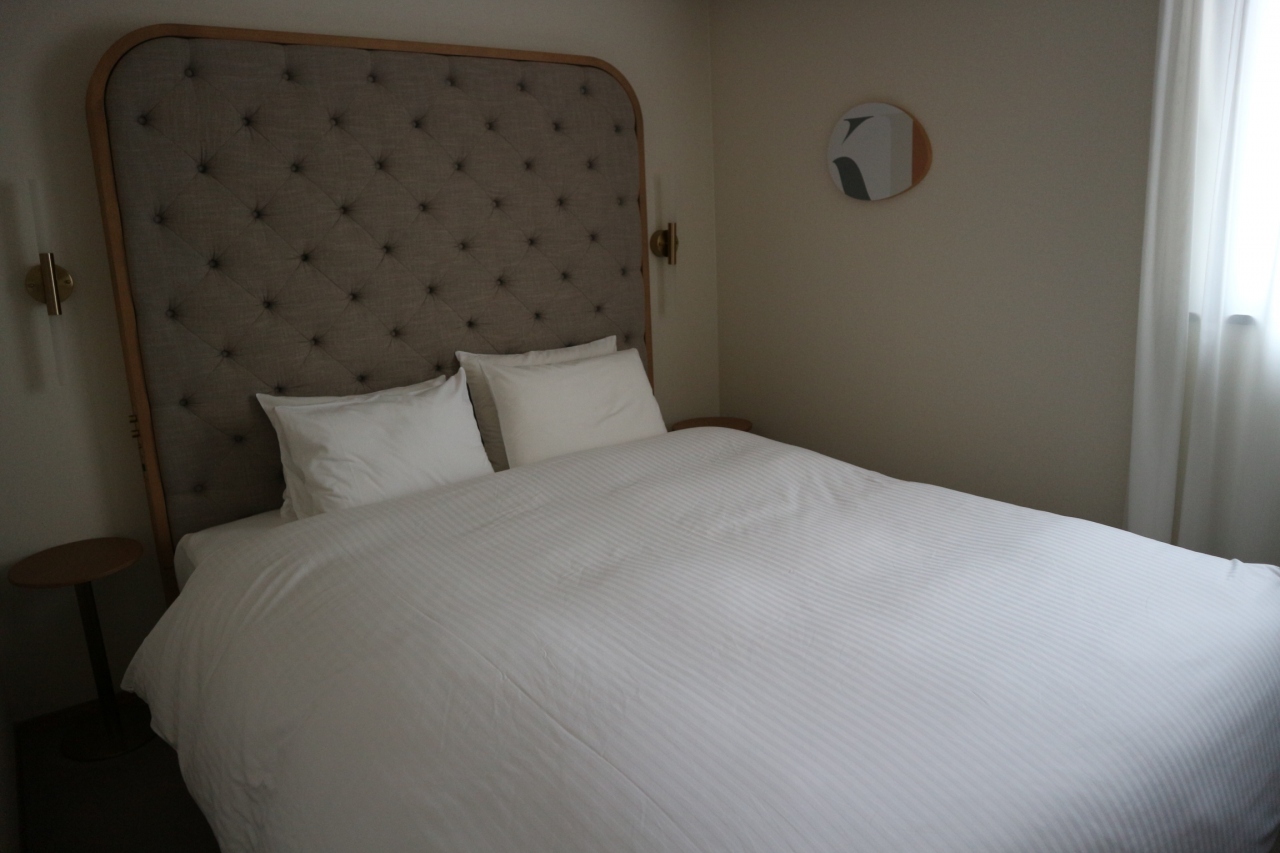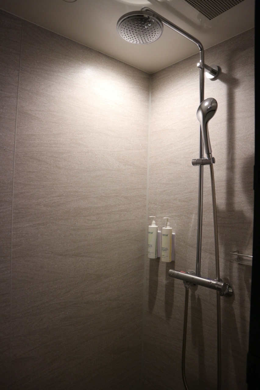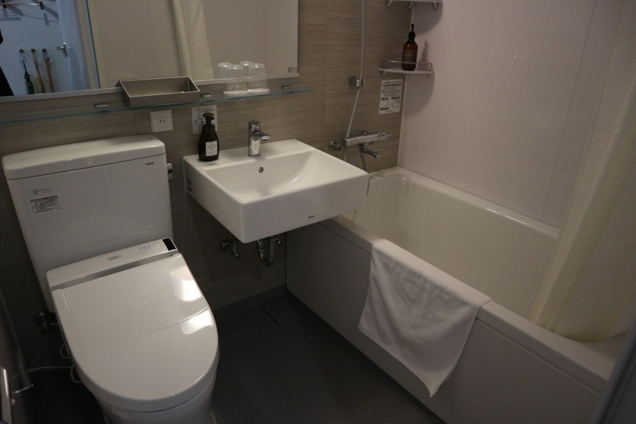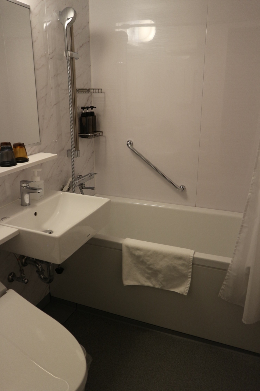 部屋はコンパクト、手洗い場が部屋の中心にあるのがお気に入り。ただし、洗い方によっては水が周りに飛ぶ時があるので床濡れに注意。シャワーのみですが洗うだけなので問題ない。ベッドは高さがありますが、海外のベッドをご存じの方でしたら問題ないと思います。
