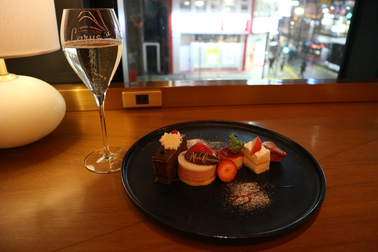 宿泊者は一人1泊につき「ノットコイン」が3枚もらえ、このコインでラウンジが使用可能。ラウンジ入室には2コイン必要ですが、この2コインでデザートプレートが付いてくるのでお得!ビールやワイン、紅茶は2コイン、無料の軽食(蒸しじゃがいも、ポップコーンもありました。ノットコインは5枚=1,000円で購入可、宿泊者でなくても利用可能、すすきのの街を眺めながらお洒落に飲めいい思い出。