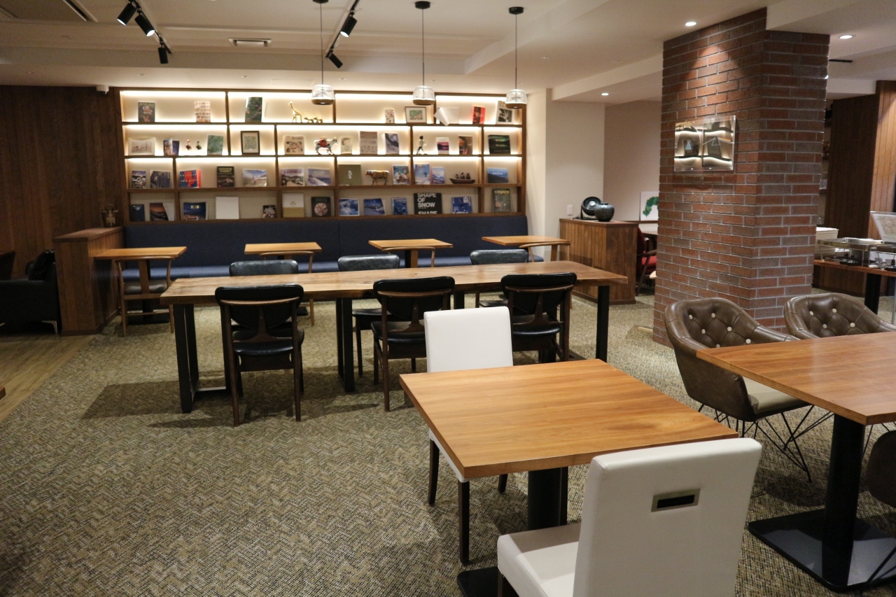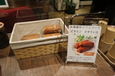 カフェのようなラウンジがあり7-9時は朝食、15-23時半はラウンジタイム、許可を取り持ち込みOKで自由に過ごせます。セルフで飲める本格的な珈琲、紅茶は「LUPICIA」で茶葉は7種類ほど。宿泊した時は北海道のソウルフード「ビタミンかすていら」のお菓子が置いてありました。