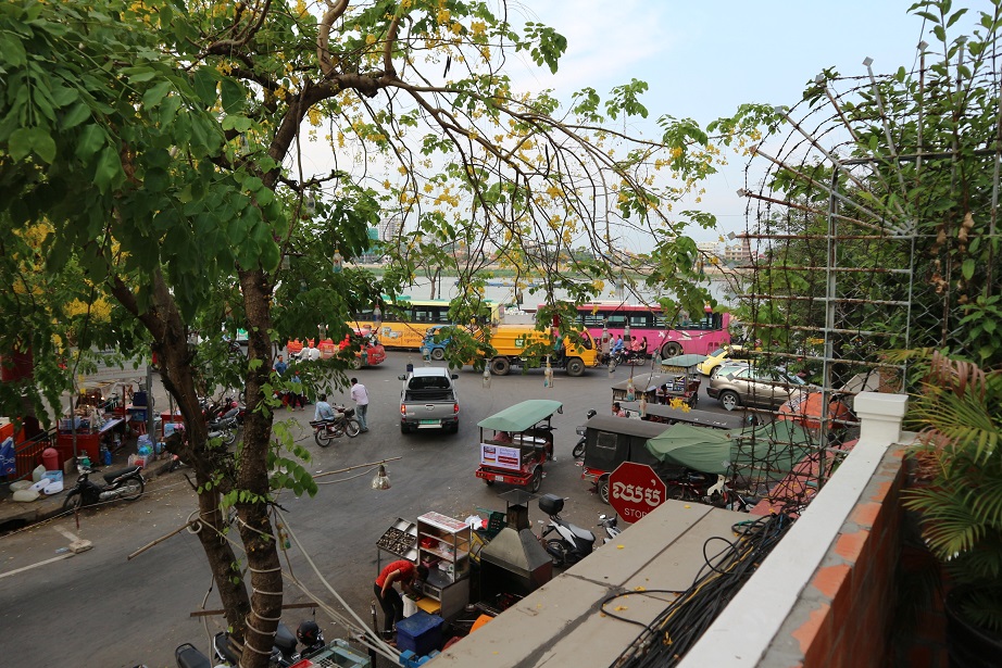 ナイトマーケット、空港-市内間のバス停が目の前でとても便利な場所。初めてのプノンペンでも迷わないと思います。