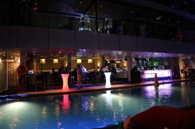 18時半に入りまだプール利用客もおりBarっぽくないのですが、19時くらいから照明も暗くなりライトがキラキラ!音楽もガンガン!テンション上がります~