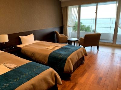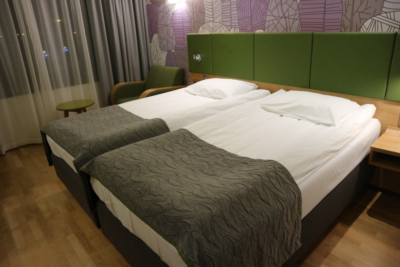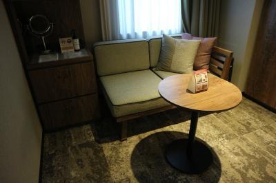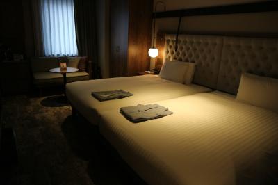 モデレートツインの部屋はセミダブルベッドが2台、狭いですがテーブルもソファもあるので良かった。水回りも綺麗なので問題なし。