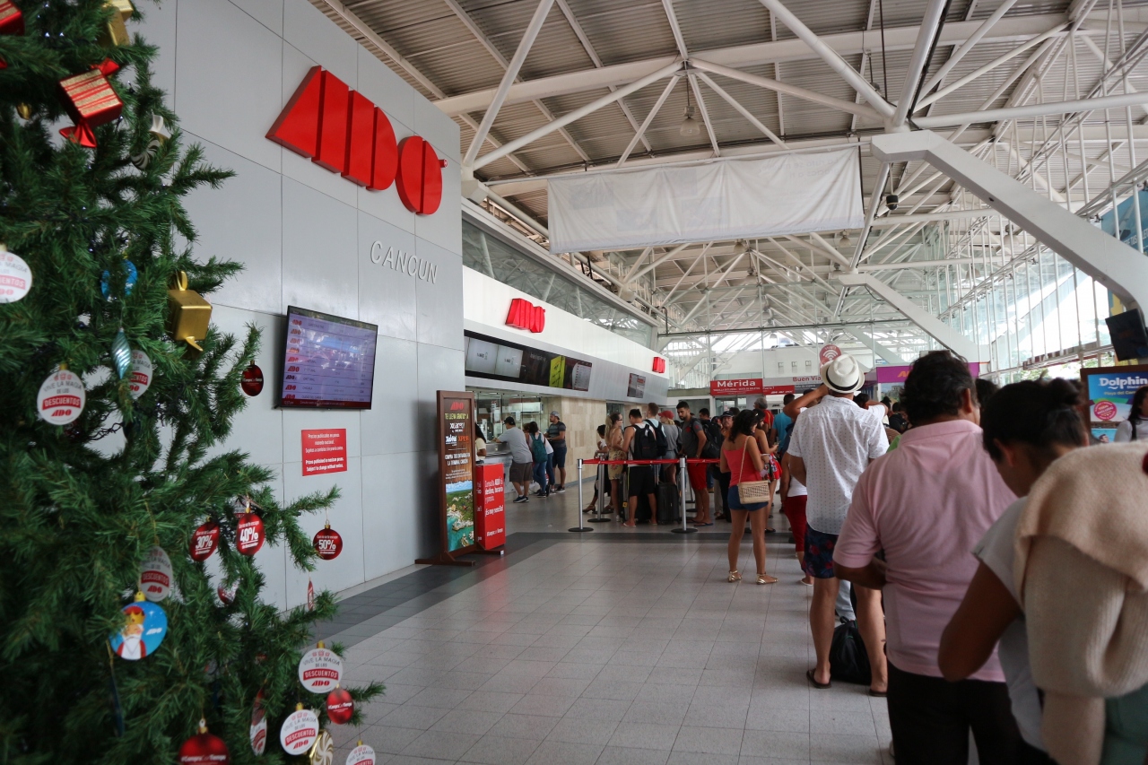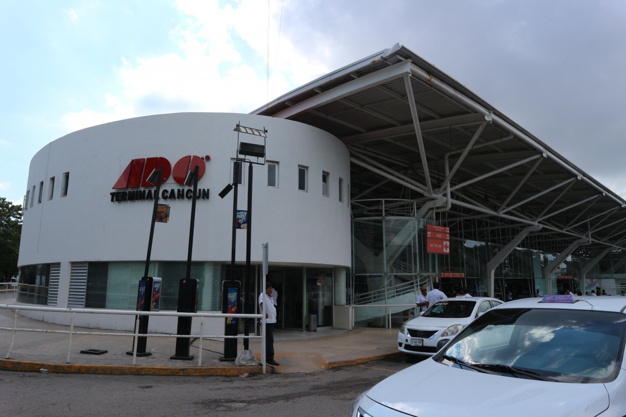 カンクンホテルゾーンから路線バス「R1」に乗りダウンタウンにあるADOバスターミナルへ。白い歩道橋が目印、分かりやすい建物です。