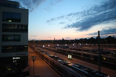 新しく綺麗なホテル、線路目の前で電車が眺められる部屋もあります。窓は二重窓なので音はそれ程うるさくなかった。ベッドからでも見えるので、電車好きは楽しい。ここのホテルの最大のメリットは部屋のお風呂だと思います!浴槽のある広い風呂なのでかなりリラックスできます。家のようなつくりなので使い勝手もいい。