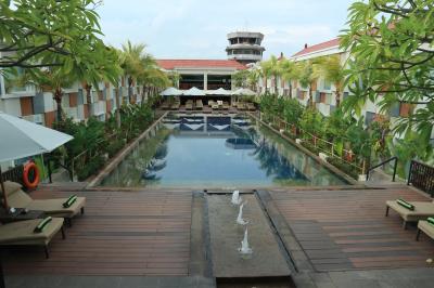 ケジョラに宿泊した際は、ぜひプールを利用するべき!グリーンがいっぱい!時間を忘れてずっと眺めていたくなる景色です。サヌールが大好きだけど、ケジョラに泊まりたいからまた訪れたいと思わせてくれるホテルです。- 旅行時期