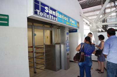 ターミナル内の2階にはトイレがあります。6ペソ必要でトイレットペーパーは入口にあるので必要な長さを切り取ってくださいね。ちなみに、バスの中にもトイレはあります。