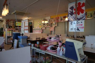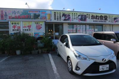 海中道路やスーパーマーケットが近く便利な場所にある店「かね食堂」、ぱっと見観光客が入りにくい外見ですが、中に入と食券で注文するので初心者でも大丈夫。ただし、メニューが豊富なので迷います^^