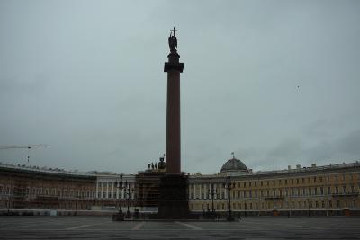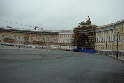 さて、エルミタージュ美術館です。入場時間になるまで、宮殿広場を見ていま...