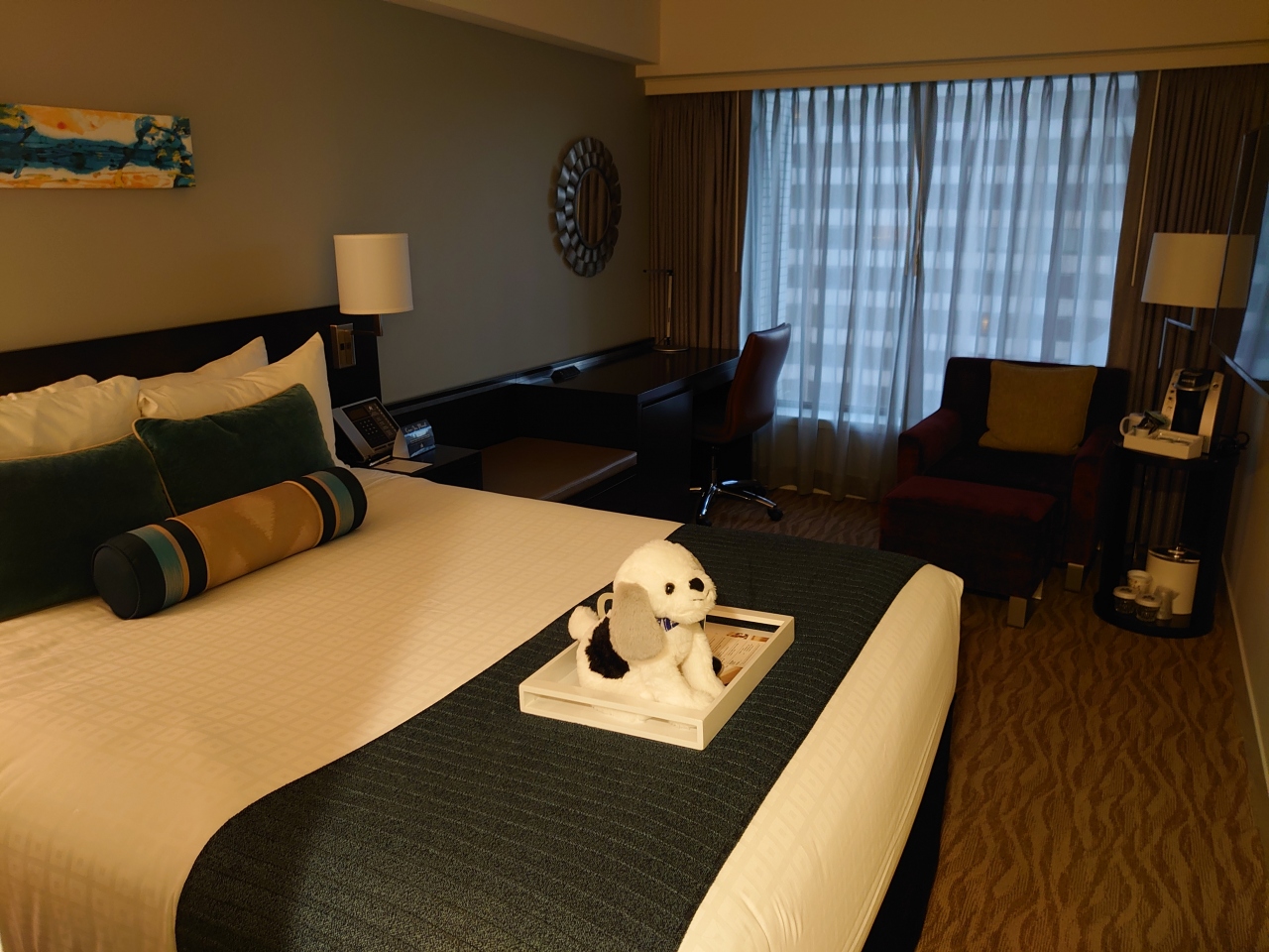 なんでか不明ですが、犬がベットでもお出迎えでした。