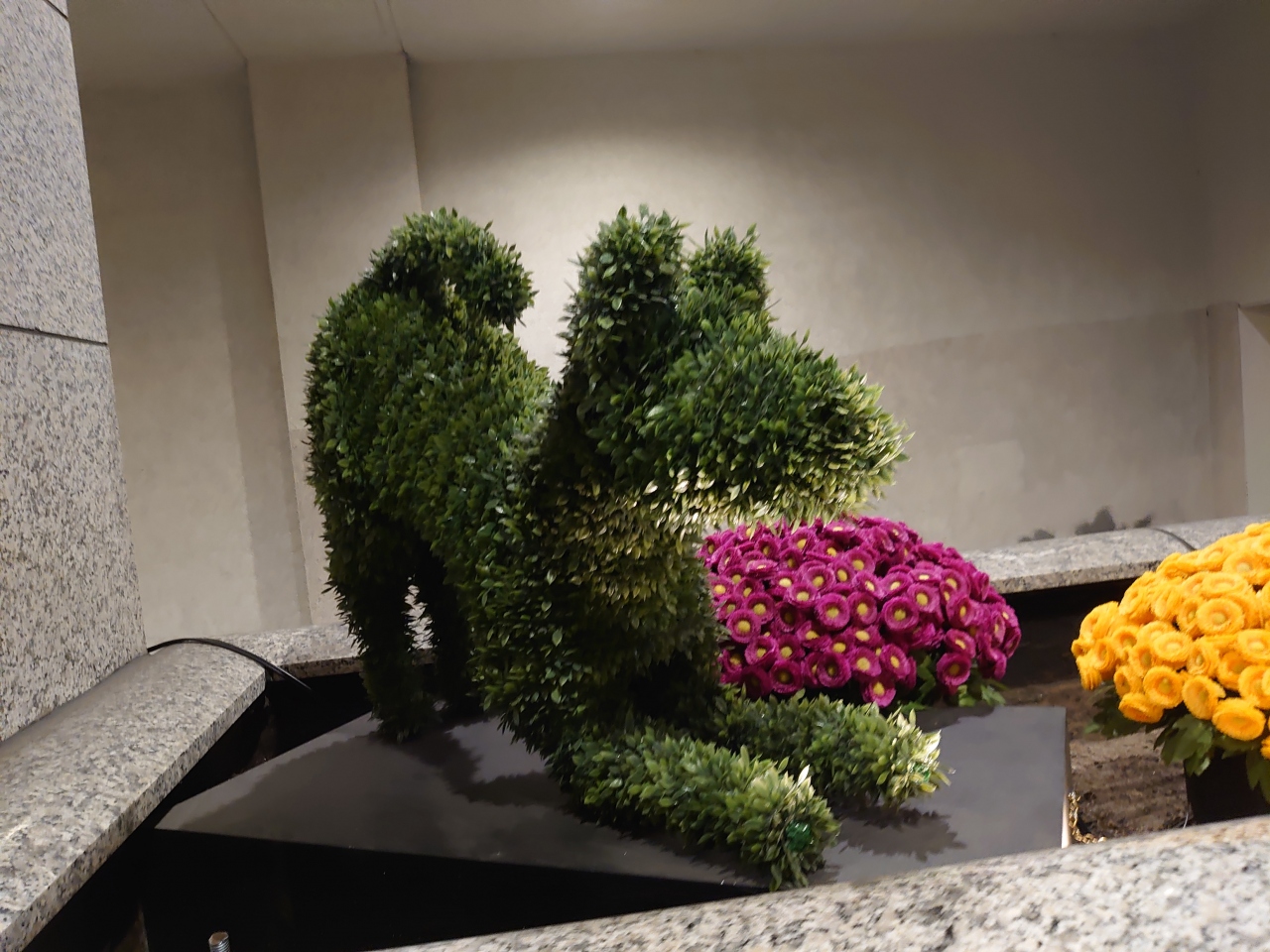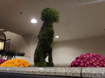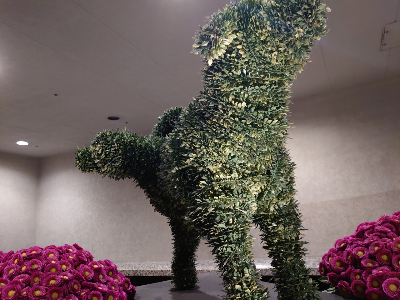 エントランスのバレットパーキングのところでも綺麗にカットされた犬が存在感抜群で鎮座している。