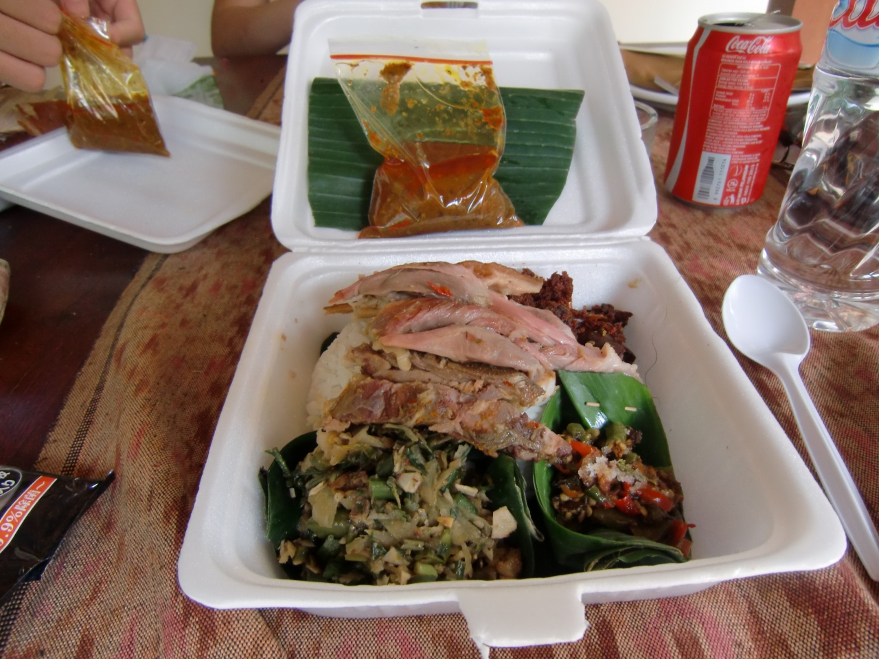 結局、店主の旦那さんらしい人が気づいて、個数だけ確認して持ってきてくれたのは、みんなの紙に包んだのとはと違う発泡スチロール容器に入ったスペシャル(1個 33,000Rp)でした。