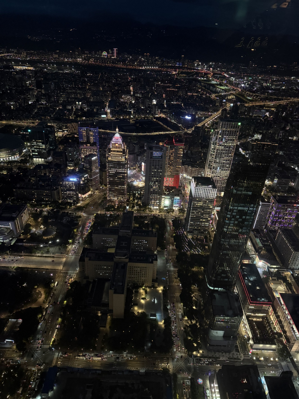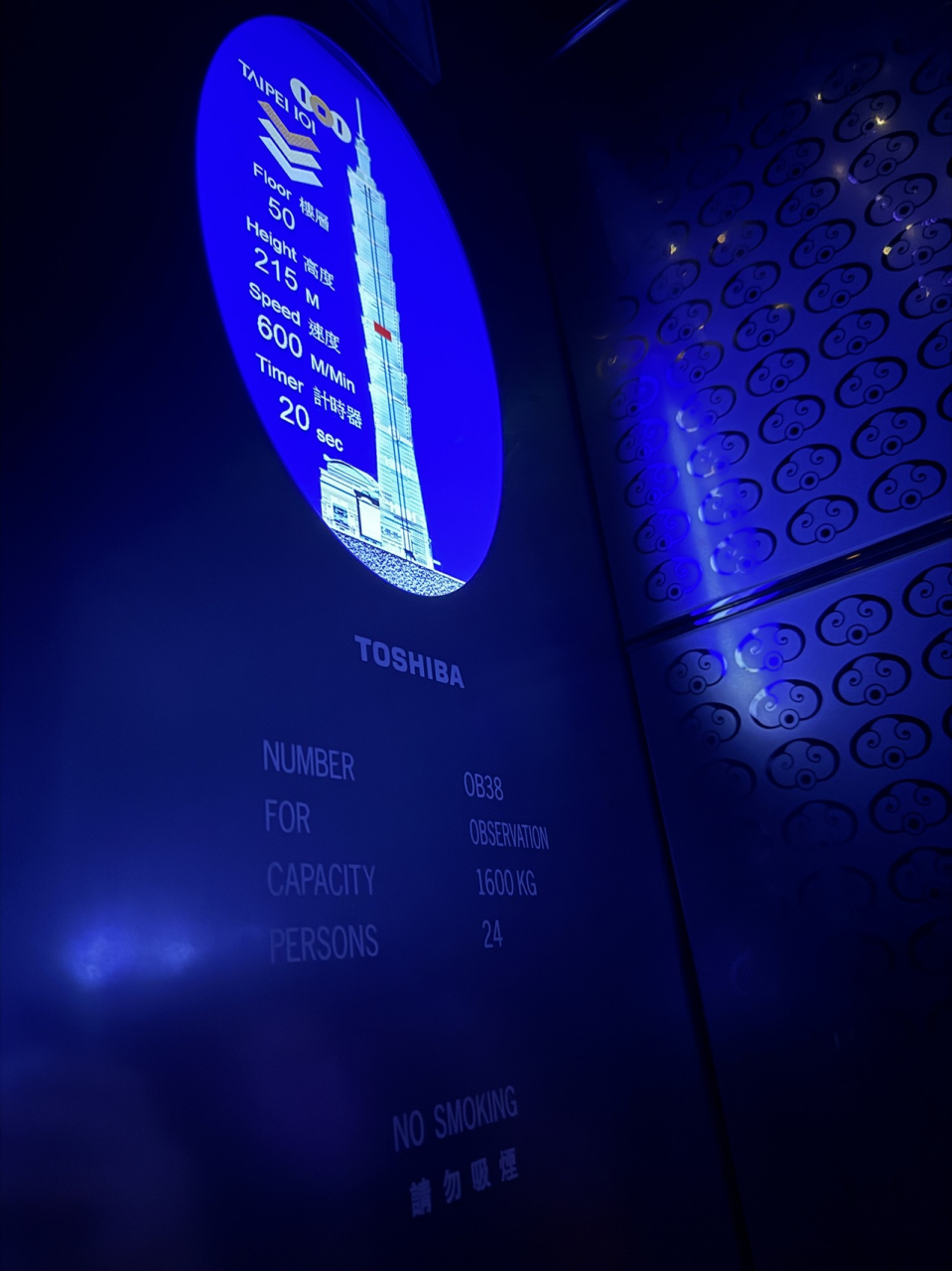 東芝製のエレベーターで上に上がり、夜景を楽しみました。