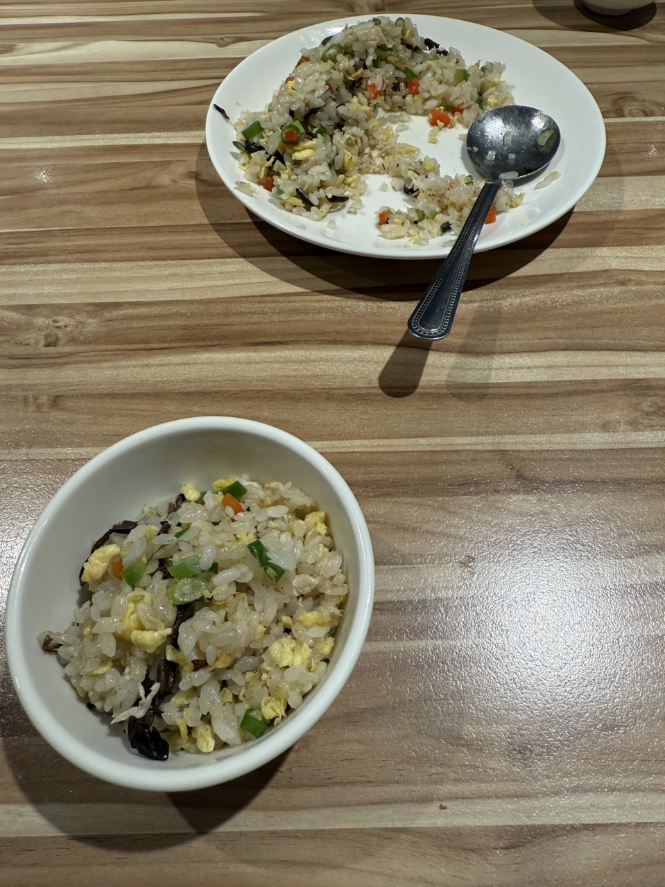 シメはキノコの炒飯。きのこのコクがあり、ベタつかず、本当においしかったです。