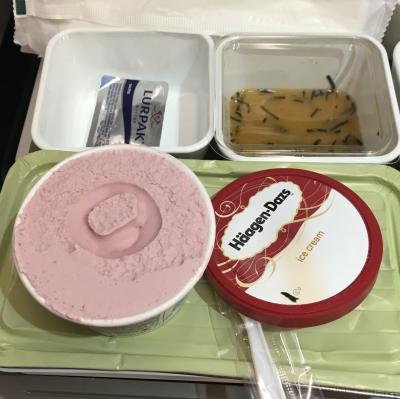 ちなみに私が食べたのは、行きがすき焼き丼っぽいもの、帰りはシーフードカレー。帰りはハーゲンダッツも付きました。