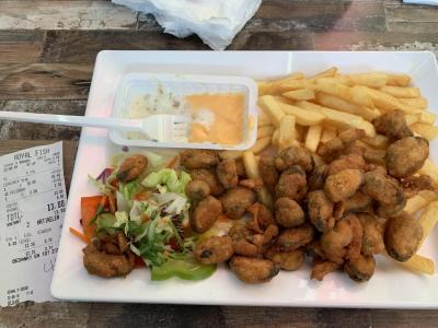 たくさんある食べ物屋さんの中から私はここでムール貝のフライをオーダー。