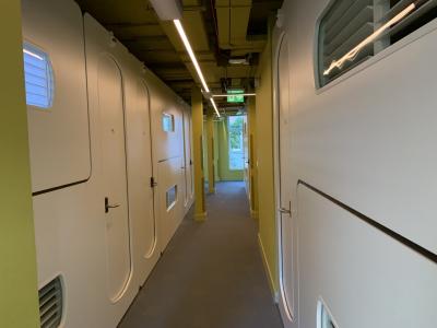 宇宙船の宿泊施設みたい(って見たことないけど)。色が変わるムードランプ...