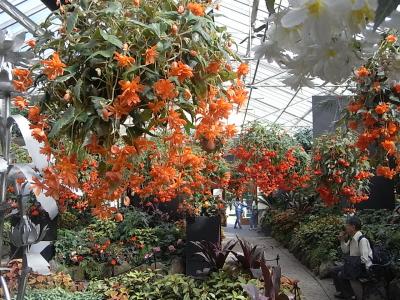 コンサバトリーは赤いベコニアのボリュームがあり見応えがあります。