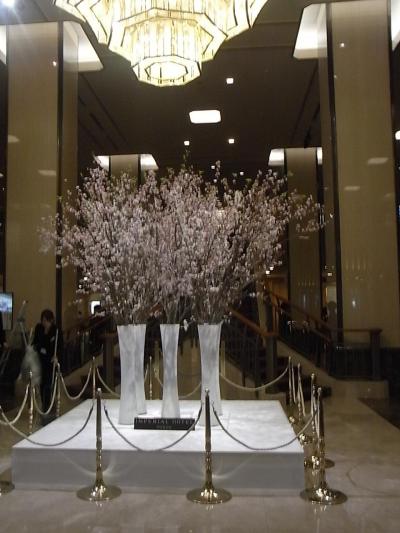 フロント前の花台の季節の生け花をみるのも楽しみです。3月下旬は桜でした。- 旅行時期