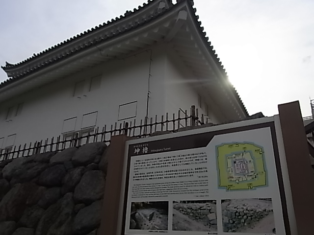 伝統工法で忠実に再現された櫓です。外見は、屋根が二重ですが、内部は三階という面白い構造だと思いました。