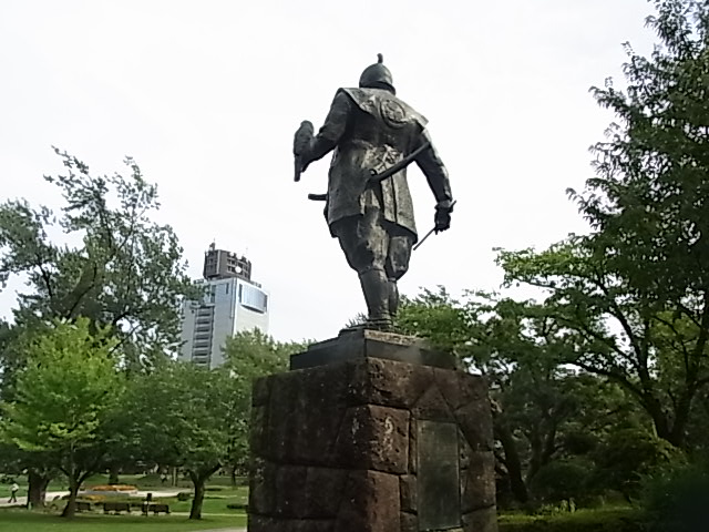 北口バスターミナルから少し遠くになりますが、大きな家康公の銅像が見えます。