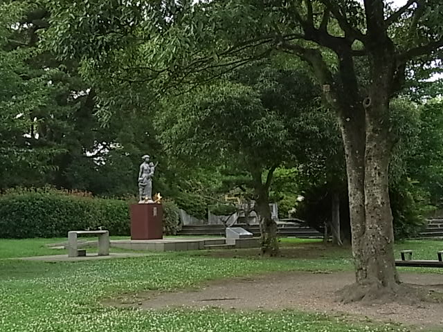 高さ6.5m(銅像3.5m)でひときわ目立っています。堤達男氏作。