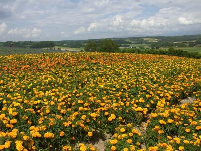 入場は無料、黄色などの華やかな色の花が多い印象で、ラベンダーはそう多くありません。