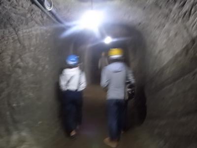 自動販売機で入場料を支払って受付をすると、各人にヘルメット、パーティごとに懐中電灯が配られいざ洞窟に。