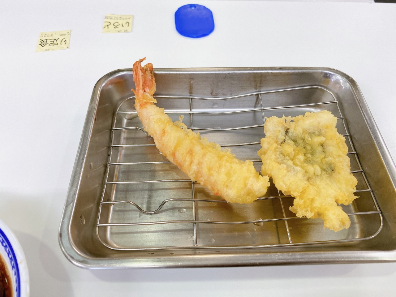以前TVで見て行ってみたいと思っていたお店で、空港からも近くランチで利用させて頂きました。バスに乗りそびれて徒歩で向かう途中、飛行機の離着陸がまじかに見えて良かったです。お店に着くと行列ができており50分程並びました。席に着くこと大盛のご飯と塩辛がでてきます。塩辛にゆずがはいっていてこれだけでご飯が進みます。天つゆには大量の大根おろしが入っていてあっさりと天ぷらを頂くことが出来ました。カウンターで揚げたての天ぷらを1000円以下で頂けるのは衝撃的で並ぶ価値があると思いました。