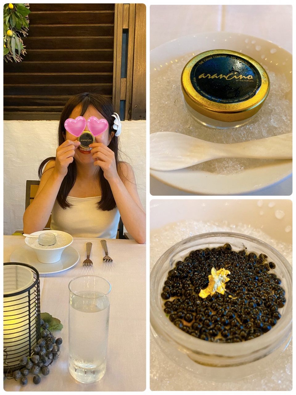 娘念願のキャビア料理。インスタと同じ料理を食べる事が出来て、笑顔で喜んでいます。