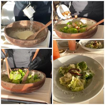 シーザーサラダ:テーブルサイドでドレッシングから作ってくれます。仕上がっていくのを見るのも楽しいサービスです。