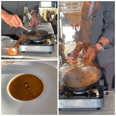 ロブスター ビスク:こちらもテーブルサイドでビスクを温め、ロブスターをフランベして盛り付けて仕上げてくれます。