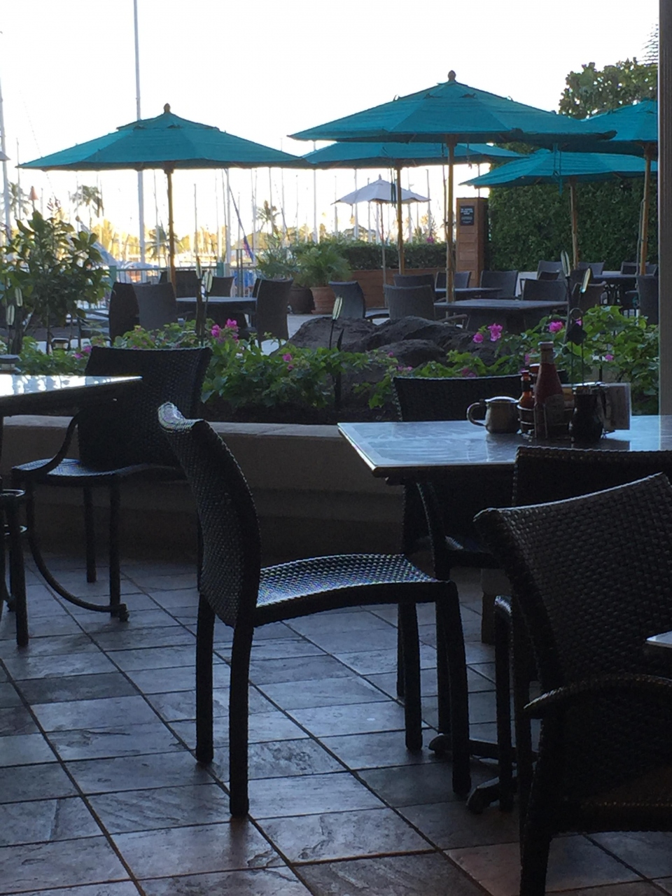 ヒルトン宿泊なので、歩いていくことができとても便利です。朝7時に行きましたが客は数組でした。お店の雰囲気はカイルアと違い、ヨットハーバーが見渡せ開放的です。