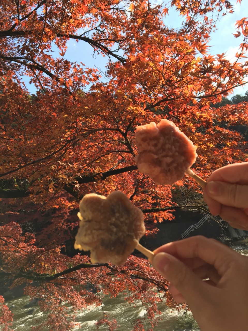 屋台も沢山出ていますし、三州足助屋敷前 香嵐渓広場の屋台には刀削麵、小籠包、五平餅、みたらし団子、ZiZi工房のソーセージ、鮎おにぎりなど美味しそうなグルメが沢山あります。鹿ソーセージや猪ソーセージもありましたよ!