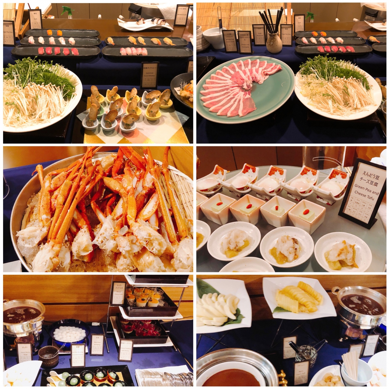 バイキングは、お寿司・豚しゃぶ・蟹・きしめん・茶碗蒸し・あら汁・筍ご飯・デザート等々。お寿司は鮪・鯛・サーモン・ハマチ・海老・しめ鯖・稲荷。小ぶりサイズなので色々楽しめます。豚しゃぶは肉厚ですが、柔らかかったです。あら汁も良い出汁で美味しかったです。デザートは、あんみつ・白玉・草餅・パンナコッタとフルーツ等でした。- 旅行時期