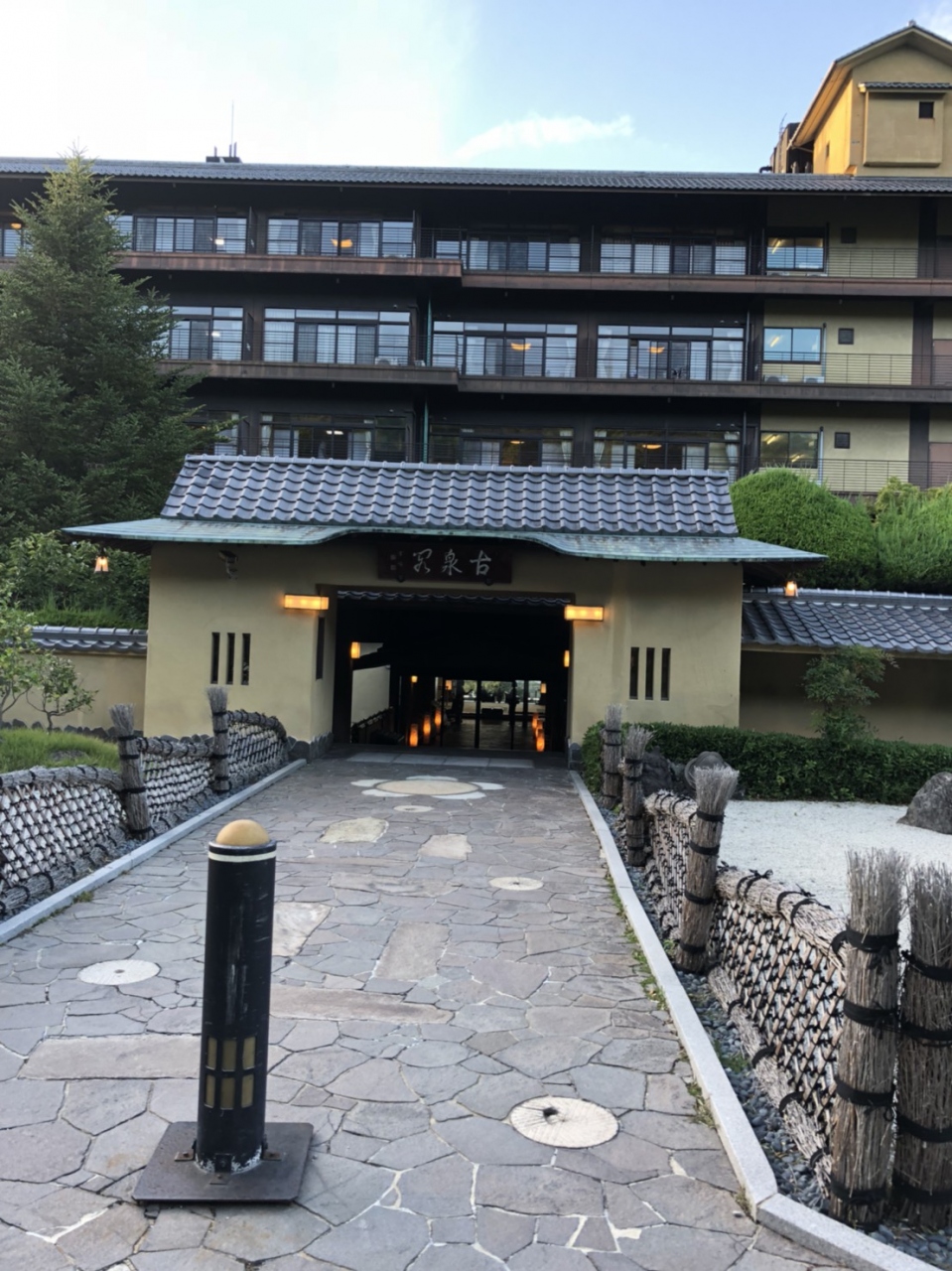 旅館の門をくぐると和風旅館の風情を感じ、ロビーのラウンジから見渡せる山々の眺望も素晴らしいです。部屋は、やや古さは感じますが充分な広さで快適に過ごせました。部屋の風呂には坪庭があり、ここにも和風旅館の趣を感じました。食事は、夕食・朝食ともに部屋食。鱧や鮎などの季節を感じる食材やちょっと変わったトマトのすき焼き等々、どれもとても美味しく頂きました。風呂は源泉かけ流しの岩風呂と展望風呂の八角堂と2か所。どちらも金泉(含鉄強塩泉)があります。茶褐色の湯はとても気持の良く身体も温まります。最近は、アジア系の観光客が増えている様でマナーの悪さを感じる部分もありましたが、スタッフの方がしっかり対応してくださいました。