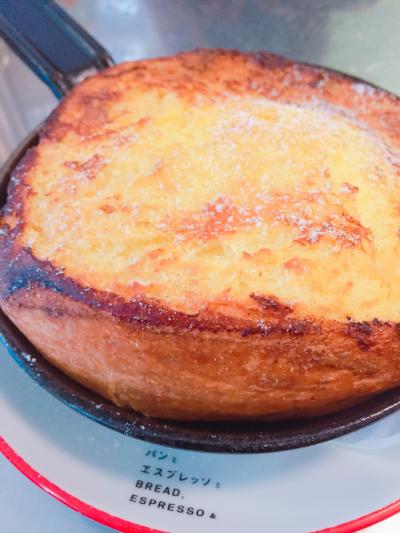 鉄板フレンチトーストは熱々の小さいフライパンに乗せられて来ます。外はカリカリ。中はプリンみたいにふっわふわ。とにかく美味しい!!熱々なので食べるのに時間がかかるかも…。