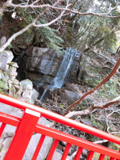 日帰り温泉施設とホテル金泉閣の間を川が流れ、川の横にはベンチもあります。春祭り開催中でしたが、今年は桜はほぼ散ってしまっていました。時期が良ければ、お花見や夕涼みにも良さそうでした。川の上に鈴ヶ滝があり、さらに游歩道を歩くと湖もあるようです。滝の横には不動明王社もあり、のんびり散策して、温泉を楽しむには良いと思いました。- 旅行時期
